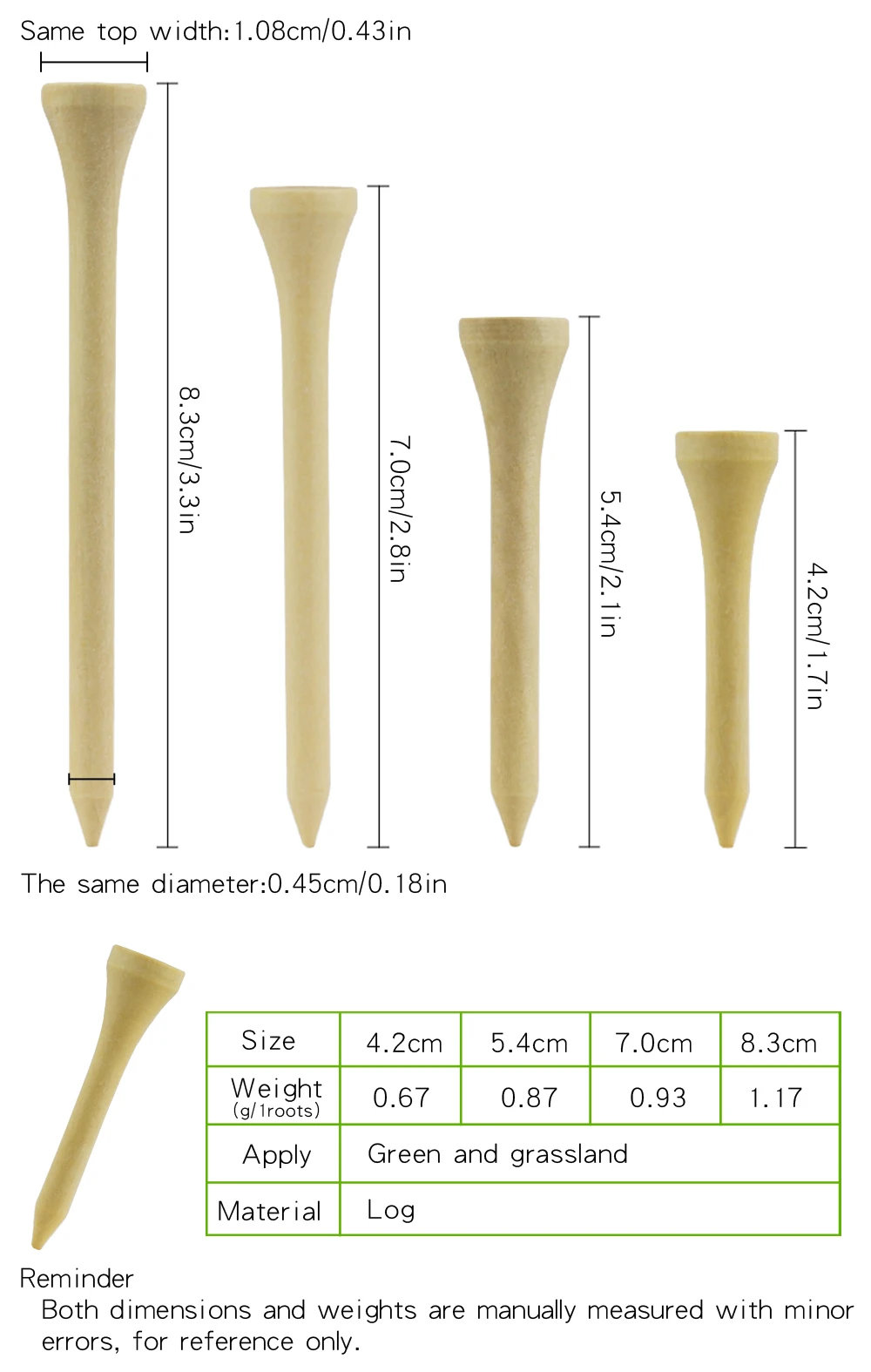 100 Count Wood Golf Tees Wooden Tee Golf Ball Holders Length 42mm 54mm 70mm 83mm Evironment-friendly Tee Micro Head Golf Tee