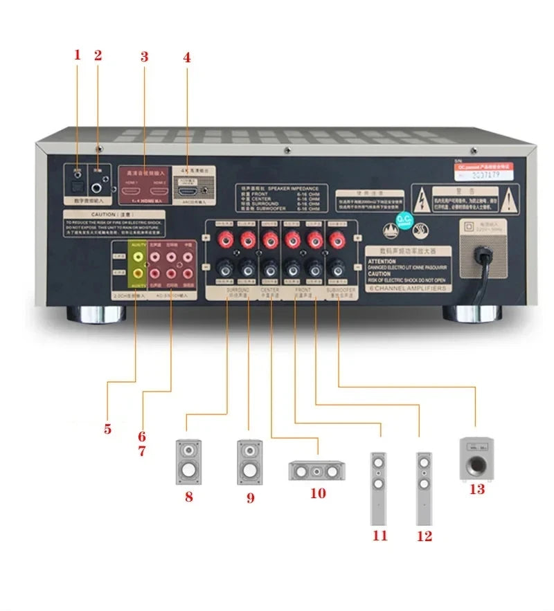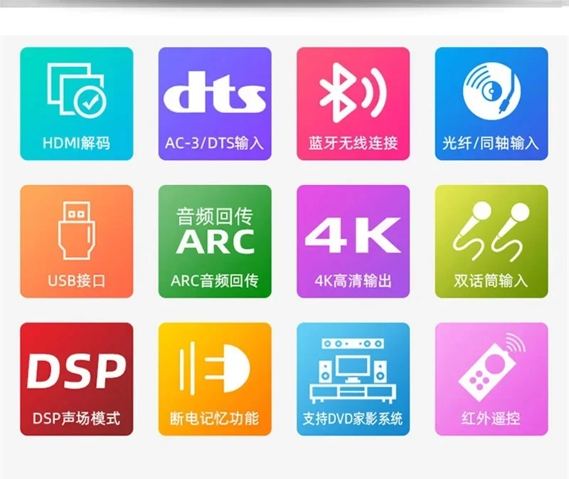 5.1 Channel Home Theater High Power Supports Fiber Coax TV Dual Microphone Bluetooth 5.0 HDMI 4K USB Karaoke Audio Amplifier