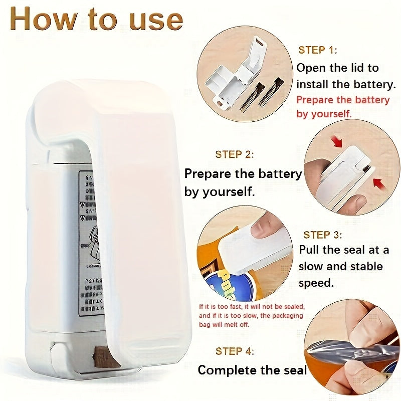 POLVCDG Mini Handheld Sealer for Food Bags - Portable Battery-Powered Vacuum Sealer to Keep Snacks Fresh, Compact Kitchen & Travel Bag Sealer with Easy-Press Design, No Electricity Needed, Food Vacuum Sealer
