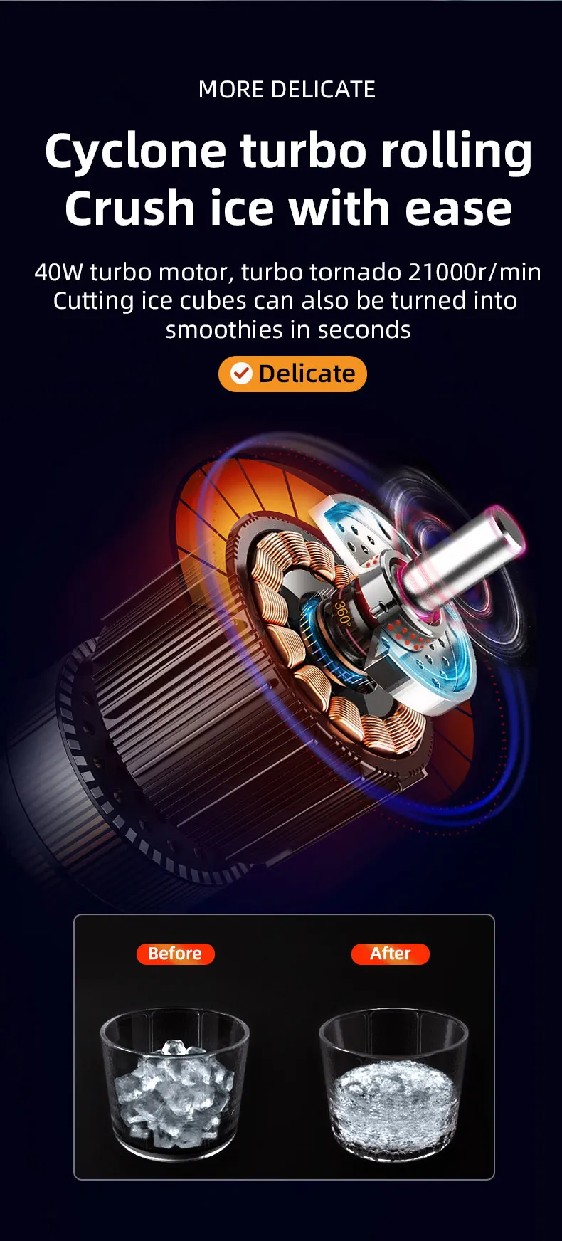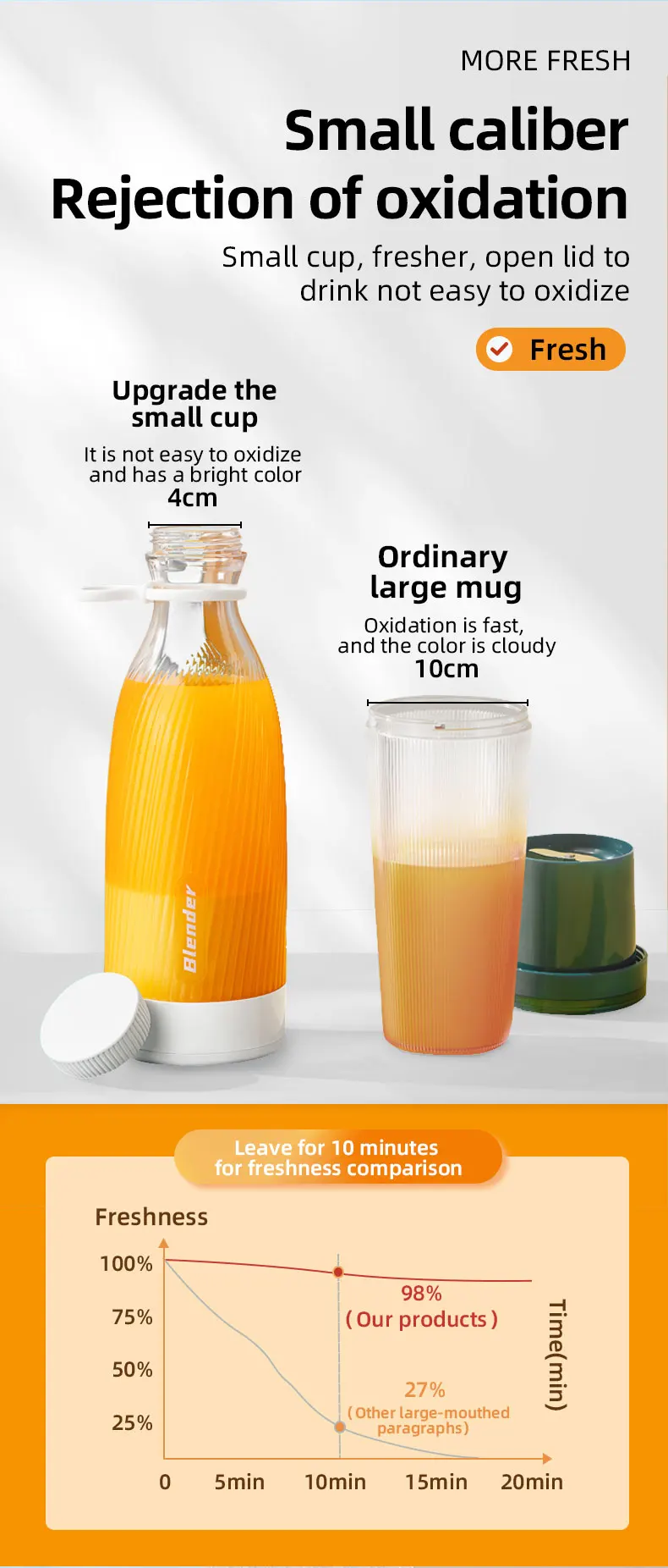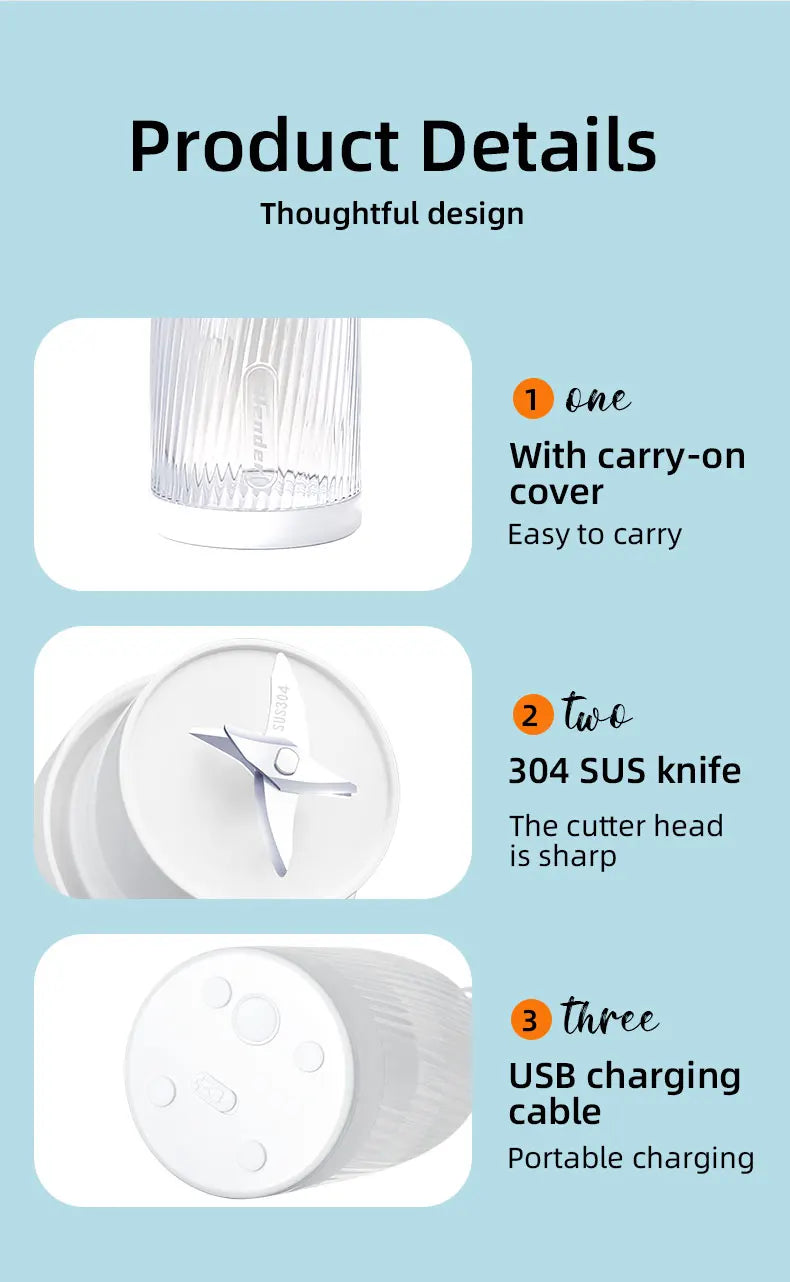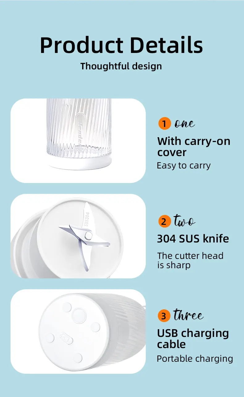 This product has a high-speed motor and a six blade stainless steel blade, which can finely extract juice. It is USB charging, wireless and portable, and easy to clean. It is a great product for your home and travel.